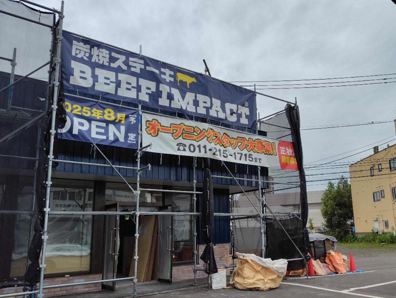 「BEEF IMPACT(ビーフインパクト)清田店」が、清田区の国道36号沿いに2025年8月中旬にオープン予定となっています。(2025.07.25記)