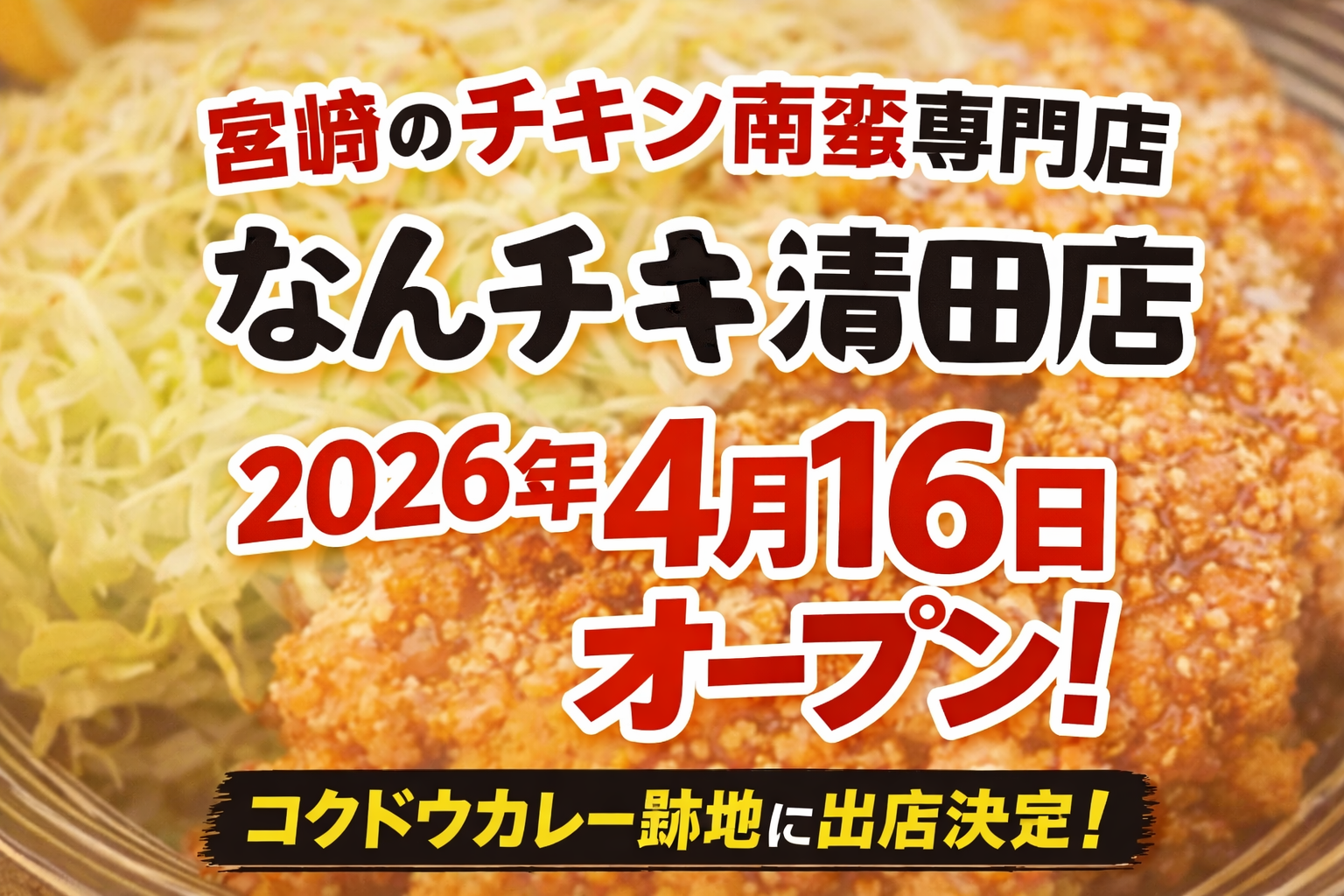 宮崎名物・本場のチキン南蛮が楽しめる「なんチキ清田店」が2026年4月16日(木)オープンします。(2026.04.05記)